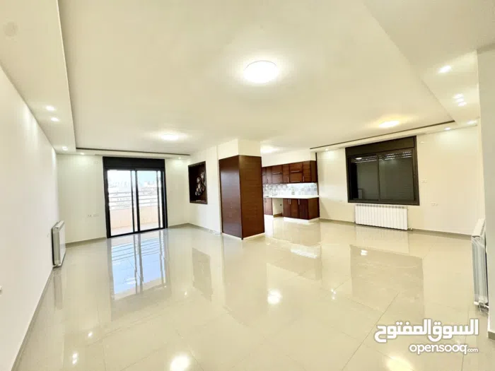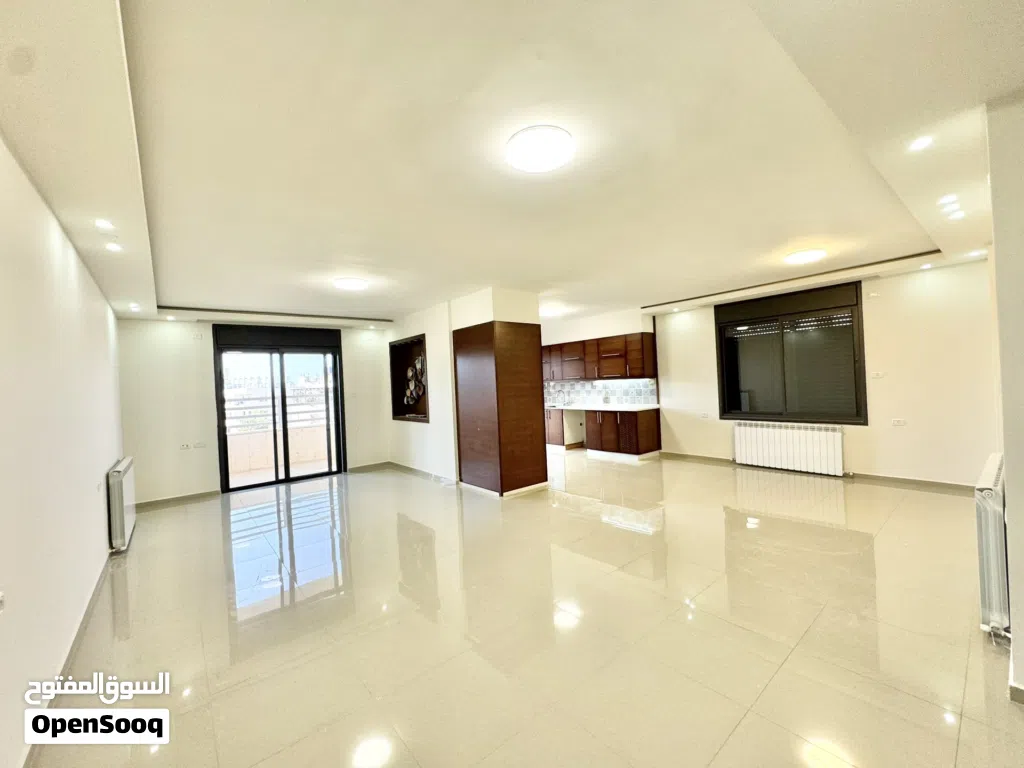 المساحة 185 م /3 غرف نوم واحدة ماستر \ 3 حمامات \ صالة / صالون \ مطبخ \ 2 برندة \ تدفئة مركزية / موقف سيارة / مخزن