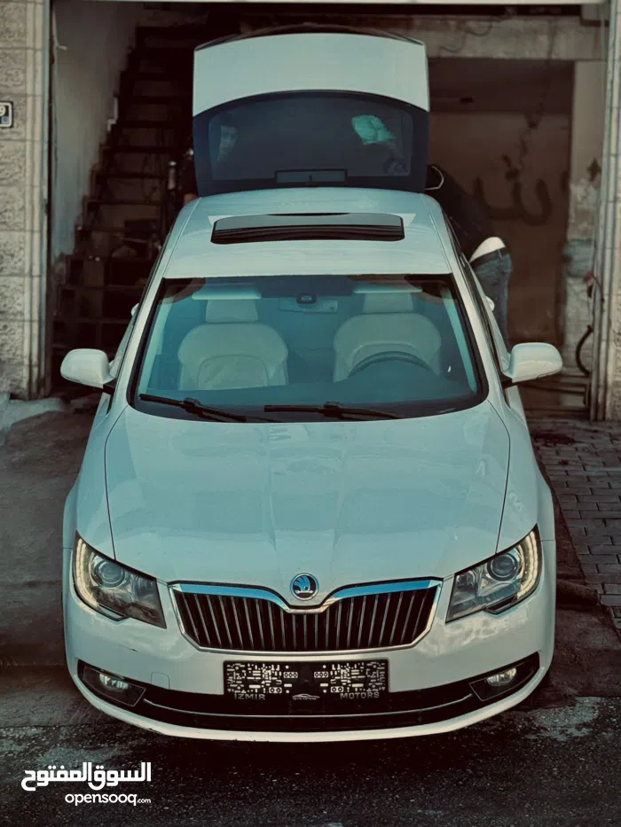 سكودا سوبيرب 2014 ديزل فل اضافات مع فتحة سقف على الكاش أو بدل