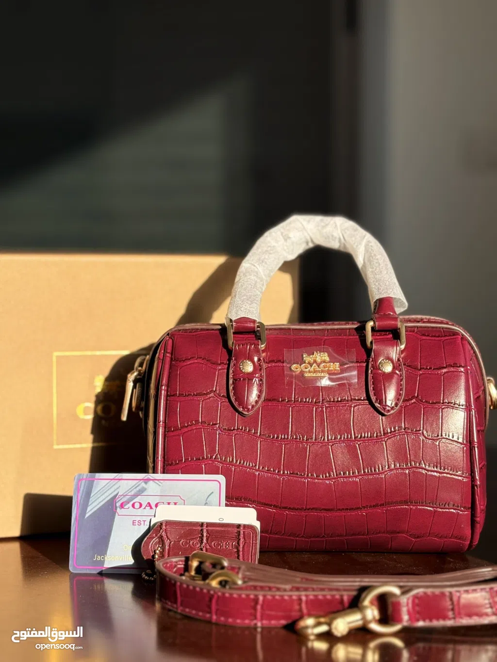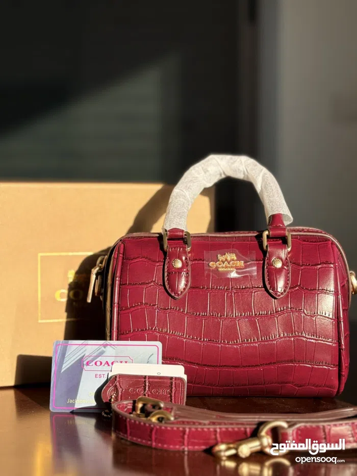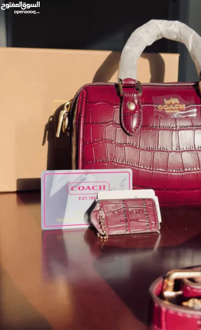 شنطة كوتش بلونها البرغندي جلد لميع بقاعدة 18 سم مع بوكس