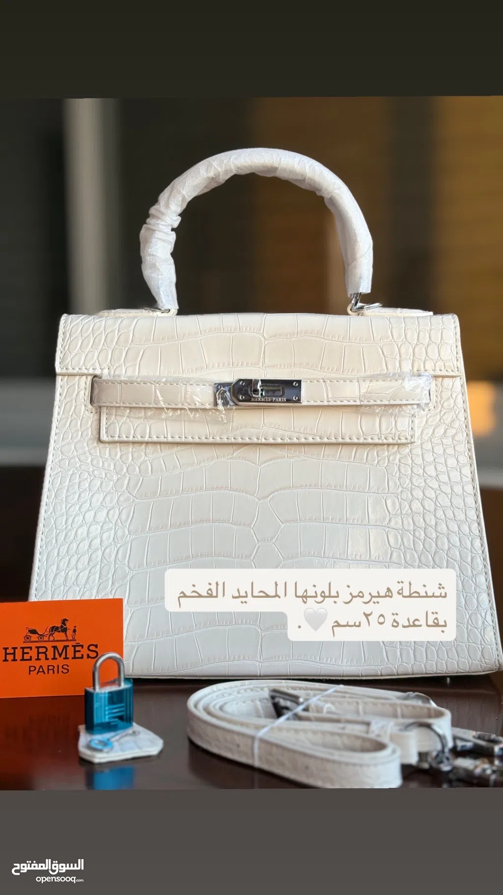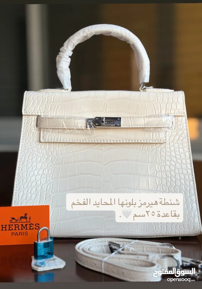 شنطة هيرمز بلونها الابيض بقاعدة 25 سم