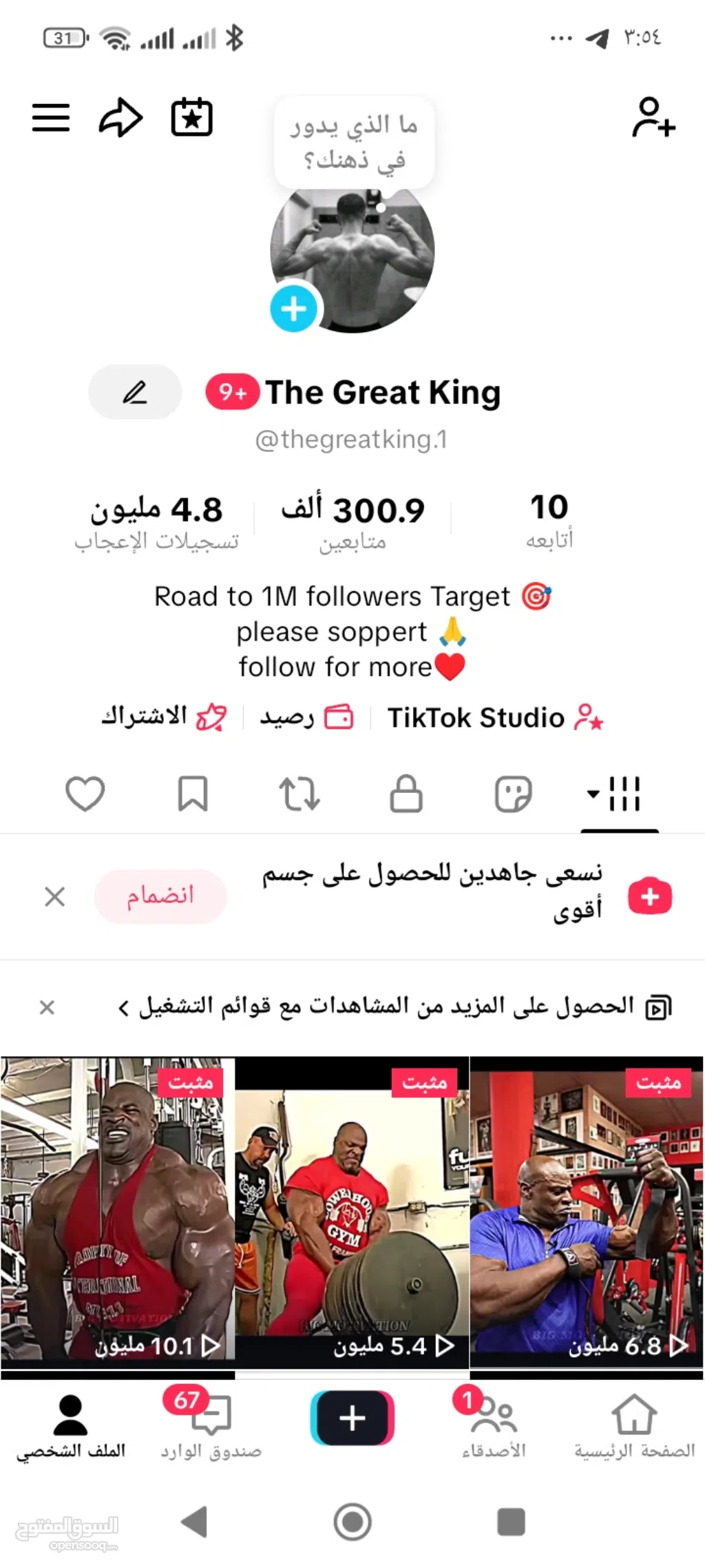صحاب محلات الأواعي والمطاعم والبنات صحاب البوتيك موجود حساب تيك توك للبيع بسعر أقل من العادي الحساب مضمون مية بالمية الي بتحب أو بحب ياخدوه يعمل اعلانات فيه لمحلو يتواصل معي لحق حالك وسعر الحساب جدا أقل من العادي وأسعد الله أوقاتكم بكل خير