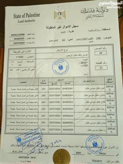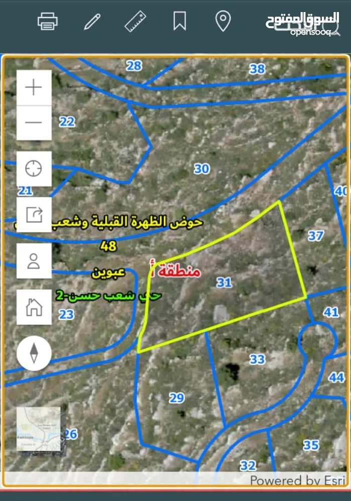 قطعة أرض للبيع منطقة A سكن في عبوين - رام الله الأرض فيها سند تسجيل طابو جديد للبيع .
