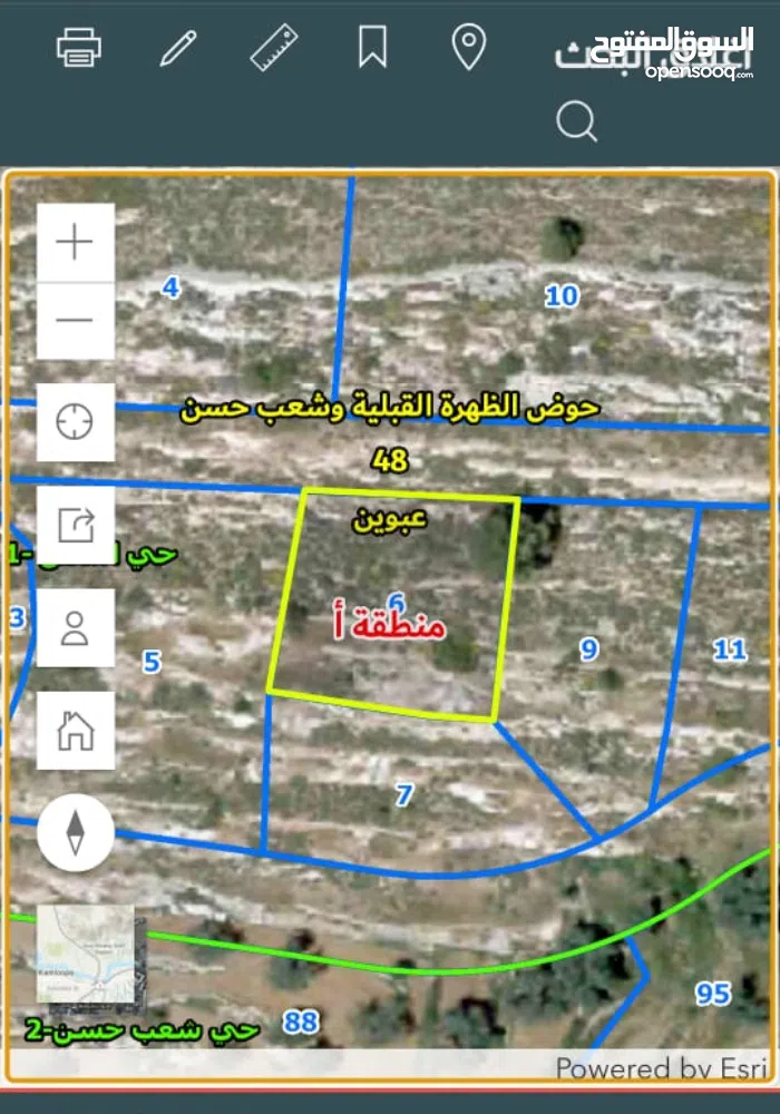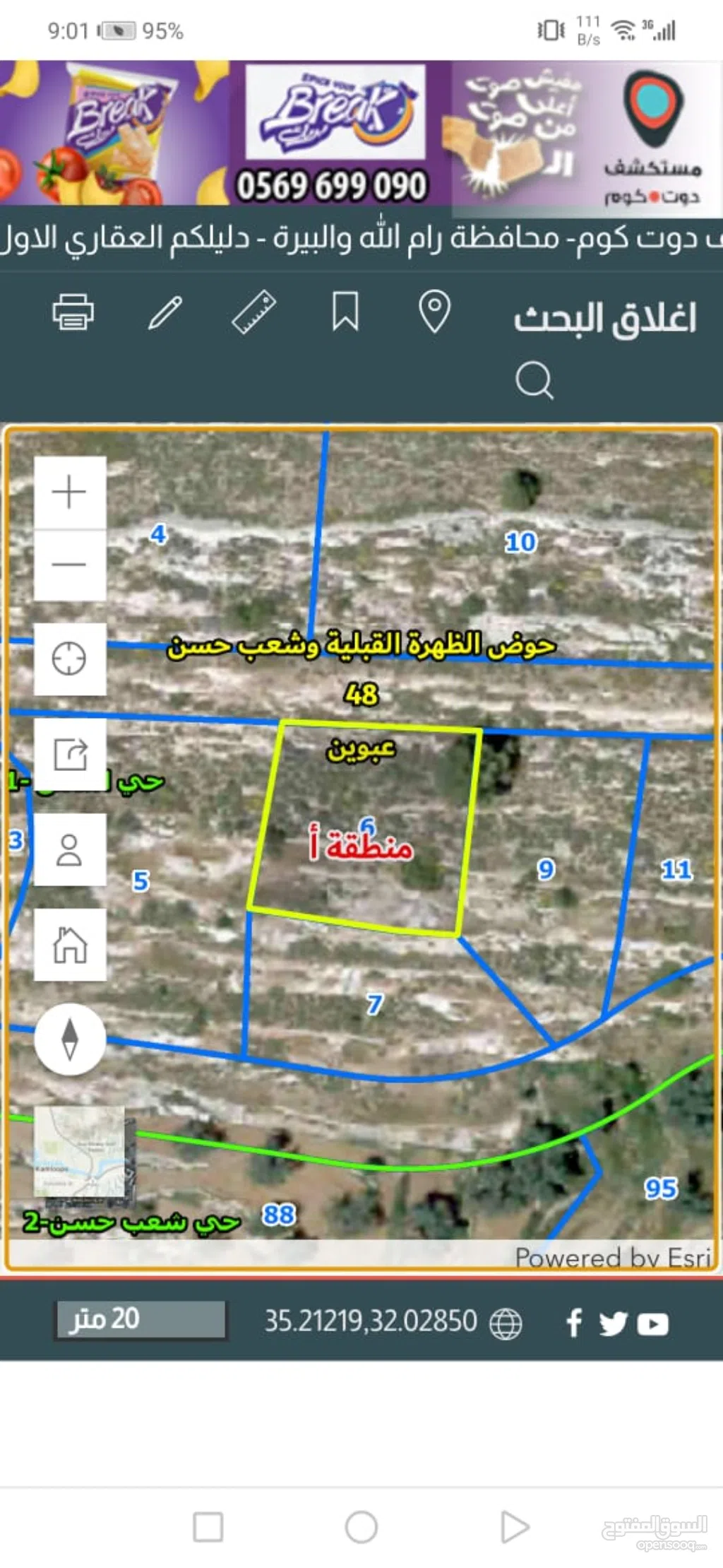 قطعة أرض للبيع منطقة A سكن في عبوين - رام الله الأرض فيها سند تسجيل طابو جديد للبيع .