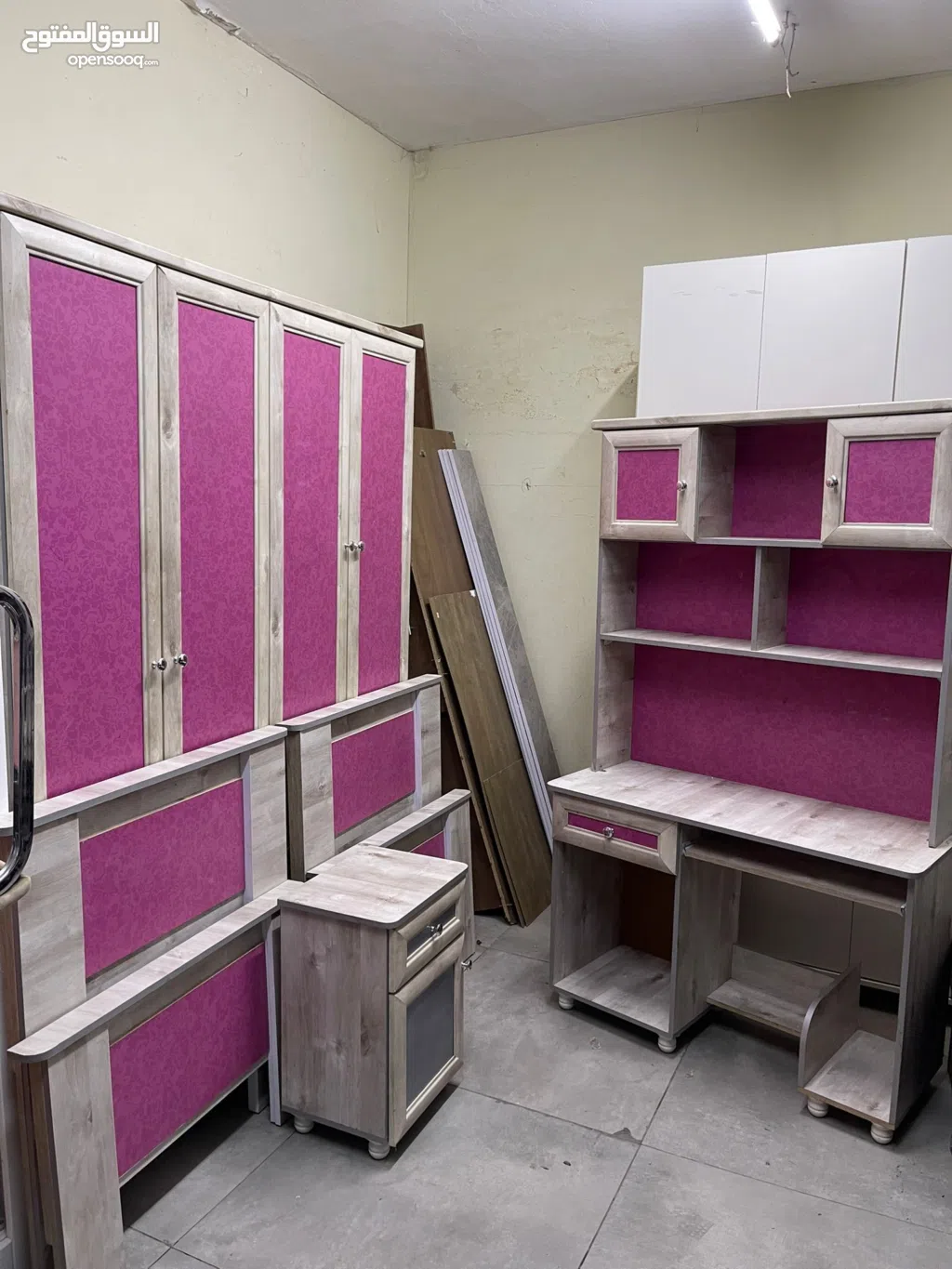 غرفة نوم بتختين مفرد وكومدينة ومكتبة وخزانة سعر حرق