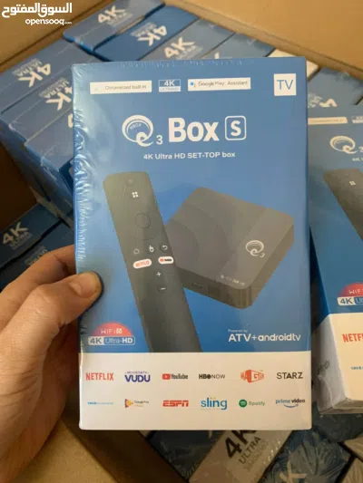 جهاز Q3S TV Box بمواصفات عالية (ويدعم الجودة العالية الدقة وفق الموديل).
