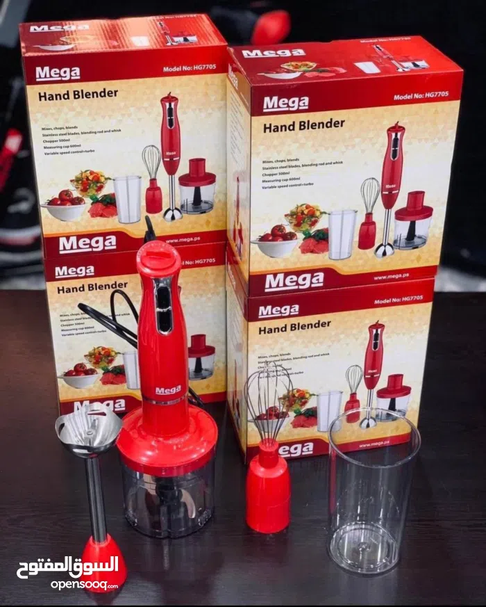 1. خلاط يدوي (Hand Blender): لخلط الحساء، العصائر، والصلصات مباشرة في الوعاء.