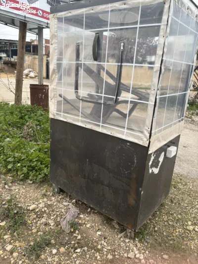 بسطة حديد مرتبة ومسكرة من 3 جهات طول 120 عرض 80 معها عدة غاز 3 عيون وسخان كهرباء كهرباء وبريق 10 لتر