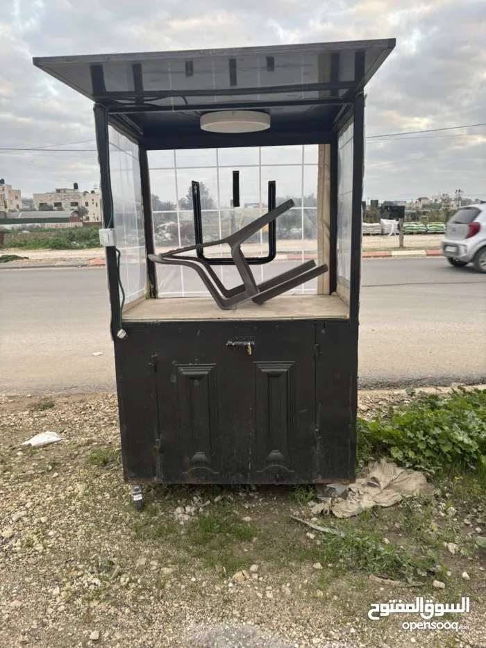 ومعها عدة كاملة قهوة وشاي ومشروبات ساخنة وغلاي ... كل اشي جاهز للشغل ... البسطة مكسورة كسر خفيف من فوق