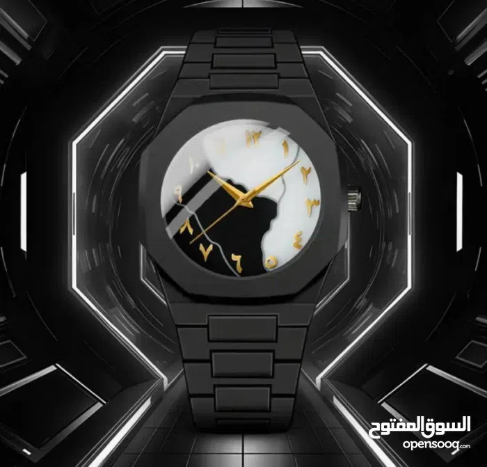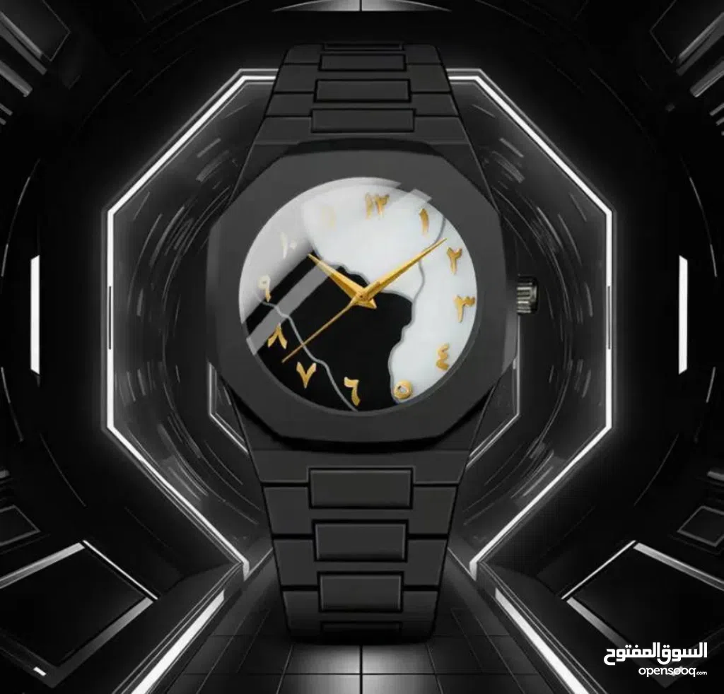 الساعة الترند الكاملة بالسواد – والبياض بارقام عربية أنيقة تضيف لمسة تراثية رقمية .