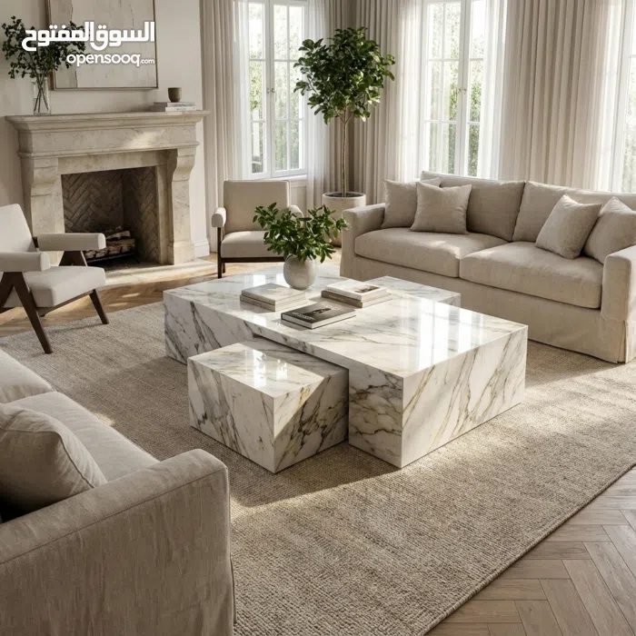 تتكون من طاولة مستطيلة ومكعبين جانبيين، تضيف لمسة فنية وعملية لأي مساحة معيشة.