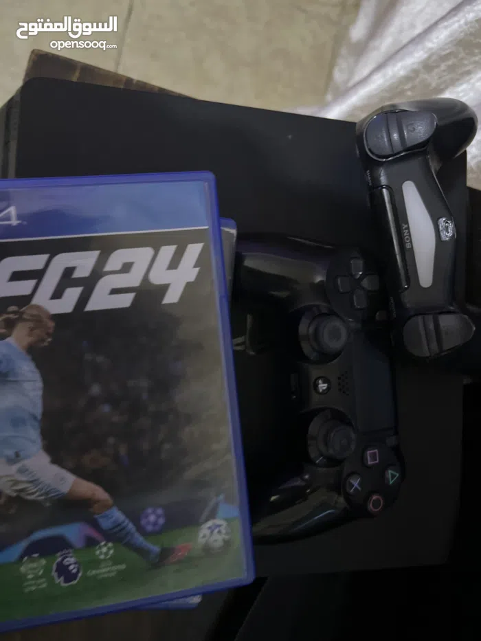 بلاستيشن 4 مع يد تحاكم يد 2 ومع السيديات ومساحة 1000 ومدخل سيديات وضعها ممتاز ومع كل اسلاكه لاصلي