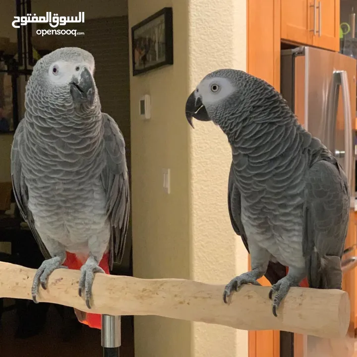 ببغاوات رمادية أفريقية مدربة منزلياً متوفرة وجاهزة للانتقال إلى منازلها الجديدة. إنها أليفة للغاية و