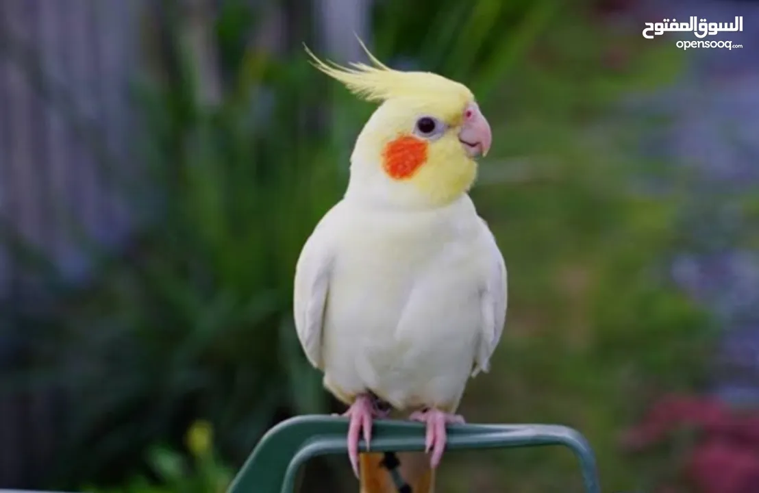 ببغاءجوز كوكتيل الدكر اصفر عين حمره والانثى رمادي عمر سنة وشهرين اليف شوي
