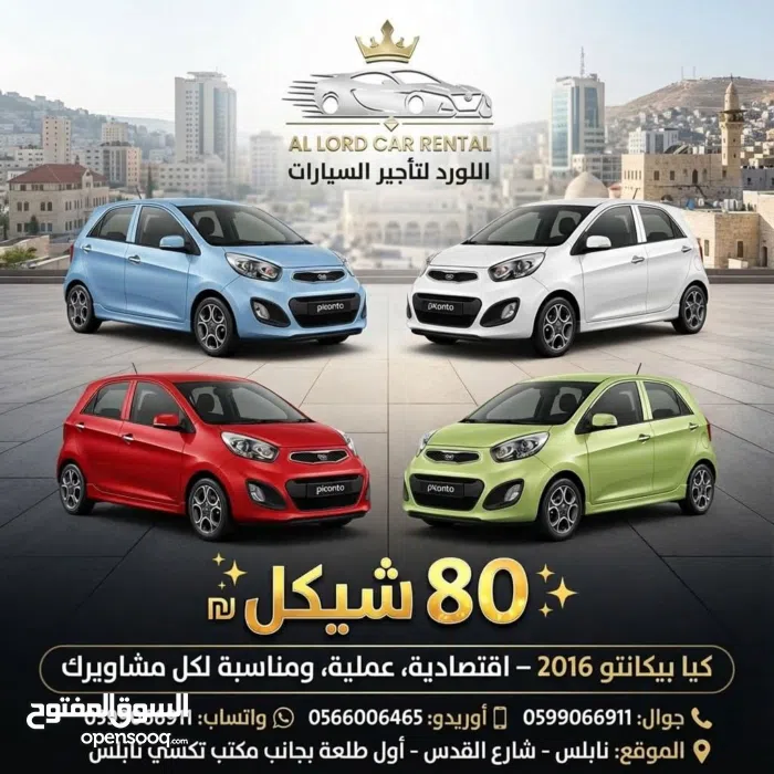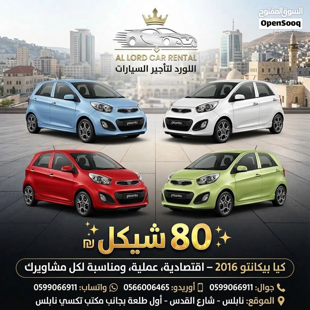 اسعار تبدأ من 80 شيكل للايجار اليومي لدى اللورد لتأجير السيارات .نابلس شارع القدس