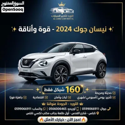جيب نيسان جوك 2024 ب 160شيكل للايجار اليومي