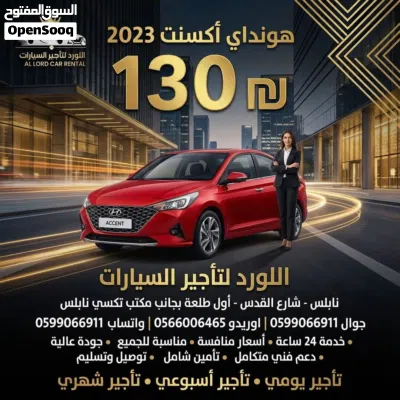 هونداي اكسنت 2023 ب 130 شيكل للايجار اليومي