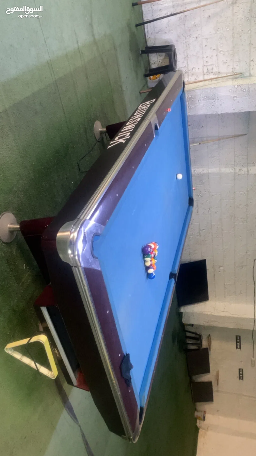 طاولة بلياردو امريكي شبه جديدة وطوايل وكراسي وثلاجة وشاشات بسعر حلو