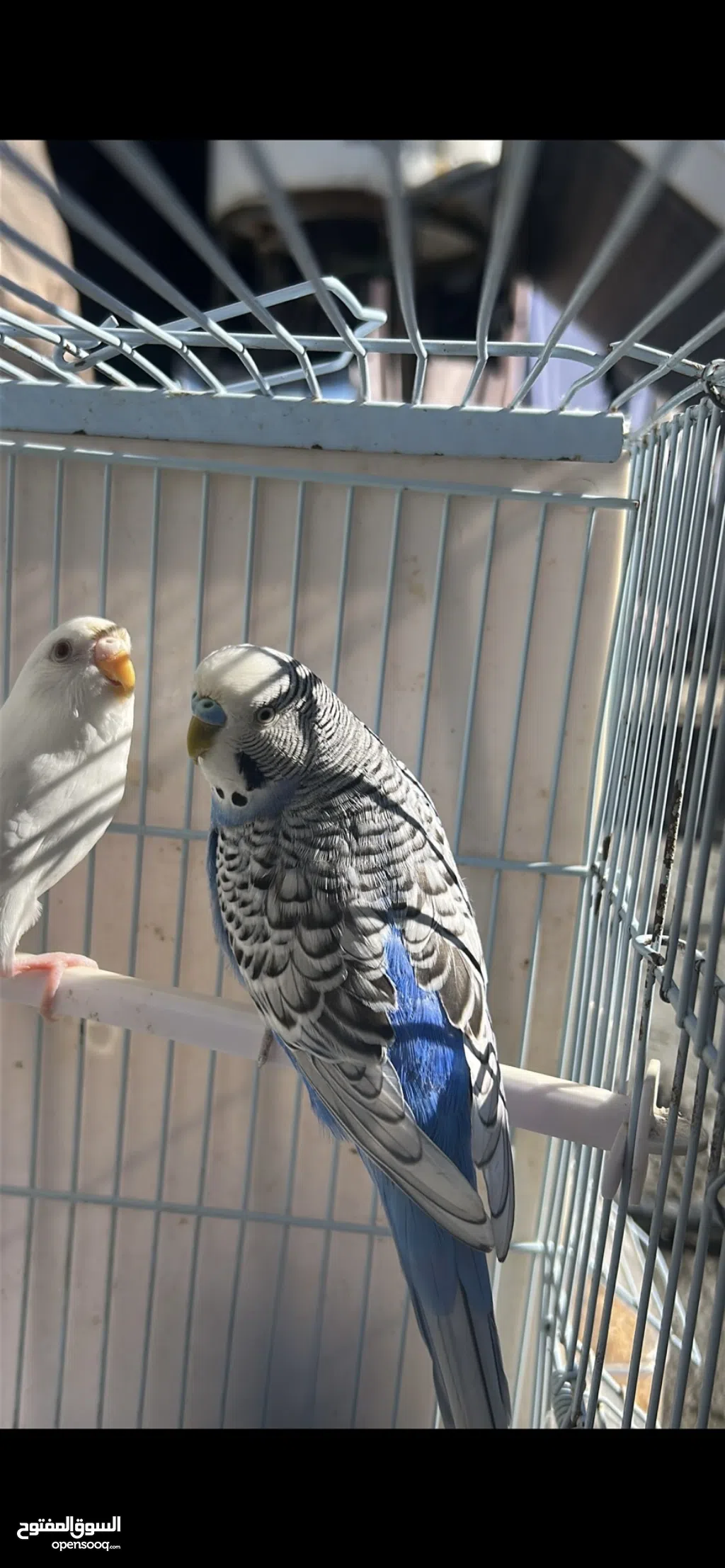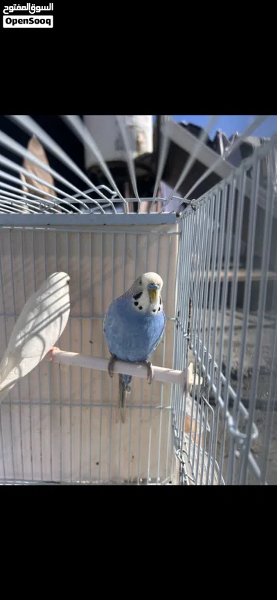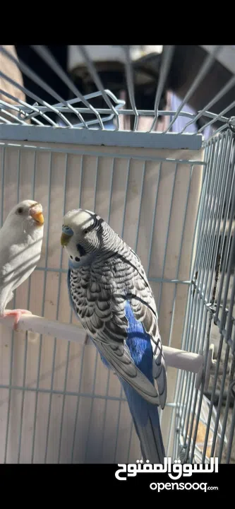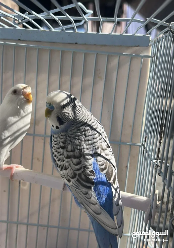 طيور بادجي للبيع ذكر ازرق وأنثى بيضاء
