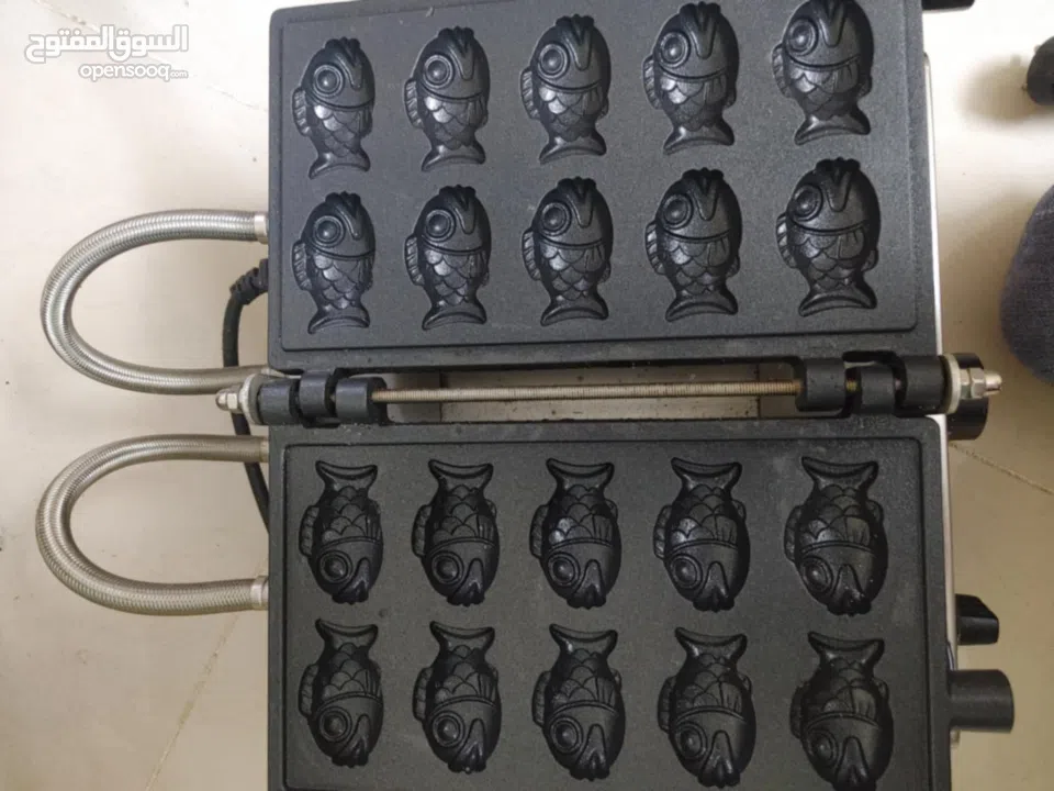 *ماكينة ميني تياكي (فيشيز) قالب 10 حبة تسخين فوق وتحت شغال 100% سمكة صغيرة، موقت ومعيار حرارة شغال 100% معها ايدين للتحكم بالقالب توصيلات كهرباء فعالة 100% موفرة جدا للطاقة ثيرموستات تسخين (فصل تلقائي عند وصول حرارة التسخين المطلوب) ، تصلح للاستخدام المنزلي او التجاري، استعمال طفيف جدا ( اقل من 3 شهور )