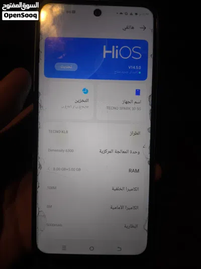 tecno spark مستعمل شهر ممتاز ولا خدش الجهاز الشاشة المكسورة لزقة حماية