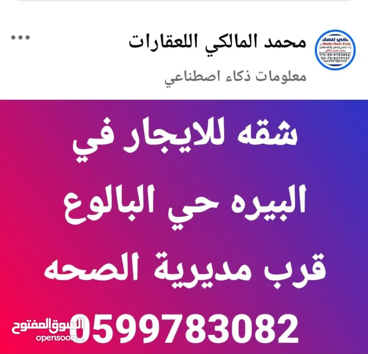 المالكي للعقارات واتس اب = https://wa.me/972599783082
