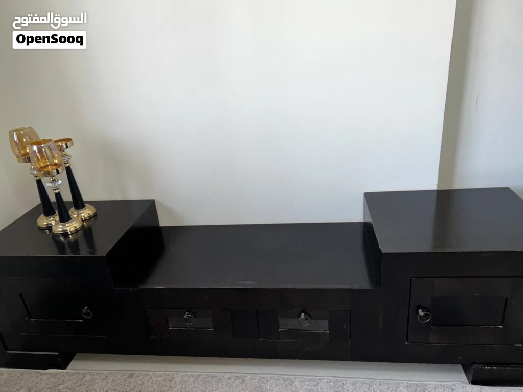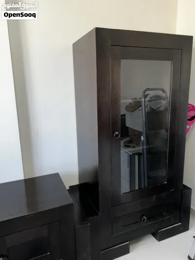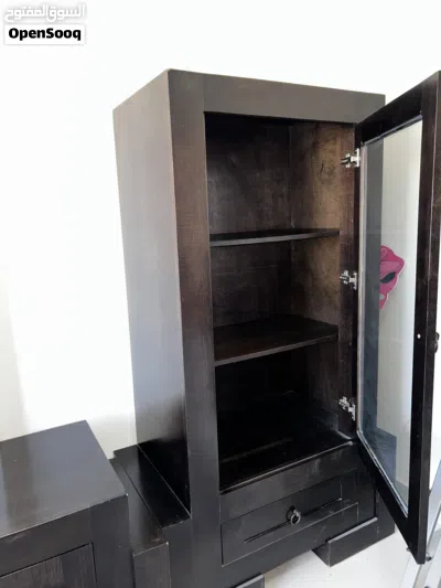بوفيه ومزنون خشب زان مرتب وتقيل تفصيل ومحلي لون اسود على بني تقريبا .. بحالة ممتازة شبه جديد