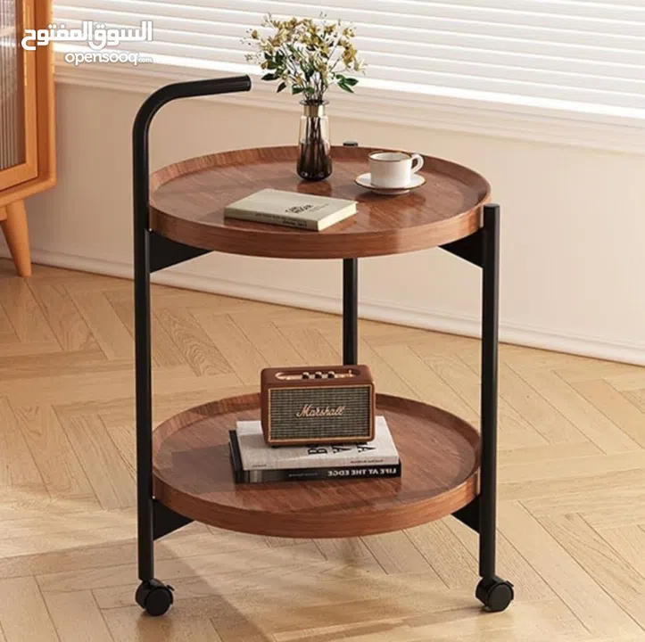 طاولة قهوة صغيرة بعربة من طبقتين بتصميم راقـي على الطراز الشمالي
