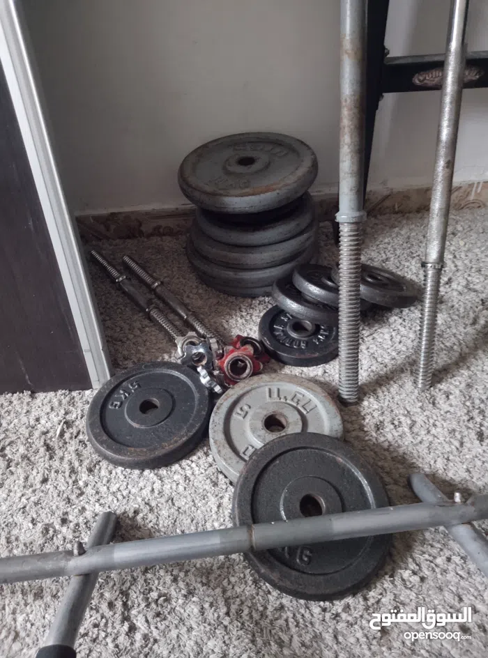 75kg اوزان حرة مع تخت مع عقلة مستعمل
