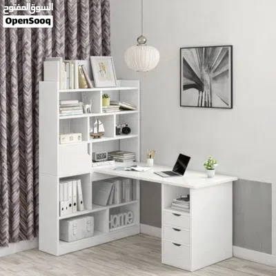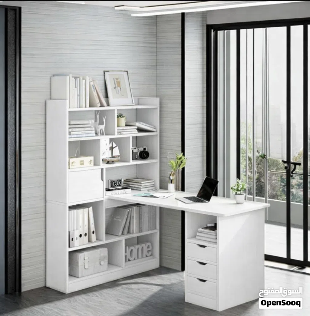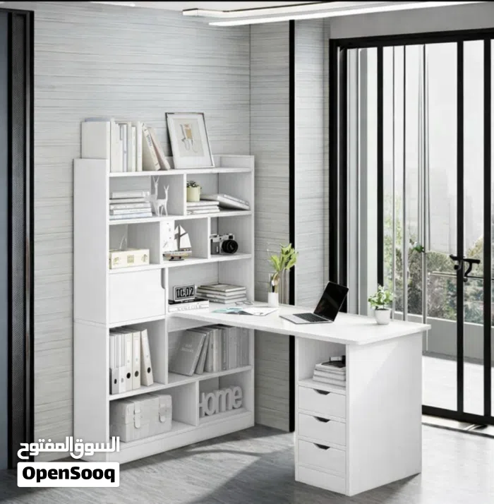 مكتب منزلي مع رفوف جانبية وجوارير لكافة الاغراض والكتب .