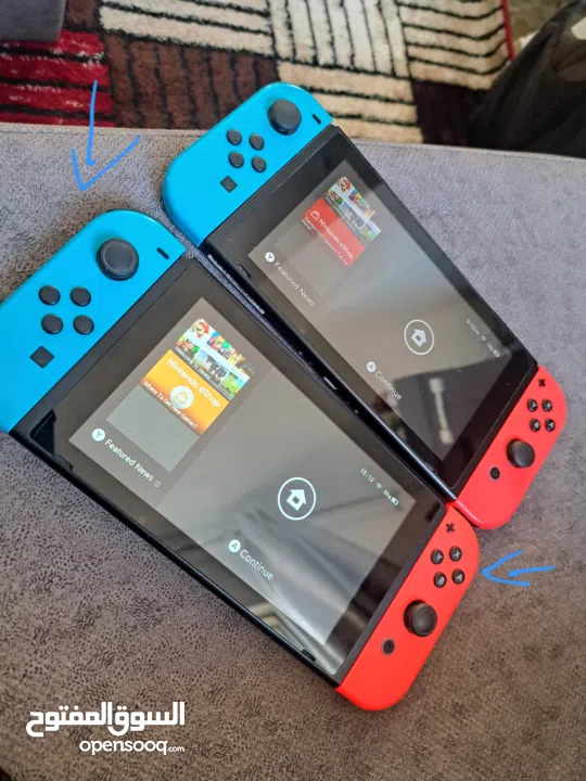 جهازين ننتندو سويتش v2 شغالات 100 بالمية مع جهاز دوك بدون شاحن وحدة منهن ايدها فيها مشكلة الجهازين اقل من سعر جهاز