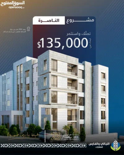 شقة صغيرة ( استوديو ) في مشروع الناصرة في مدينة رام الله في منطقة الماصيون بالقرب من فندق الكرمل، يبعد المشروع 500 متر عن دوار الساعة-مركز مدينة رام الله