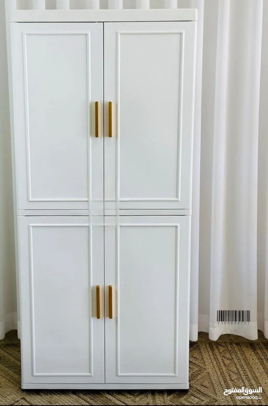 - الأبواب بأربع قطع (2 فوق + 2 تحت) مع تصميم مستطيل محفور يعطي شكل كلاسيكي مرتب.
