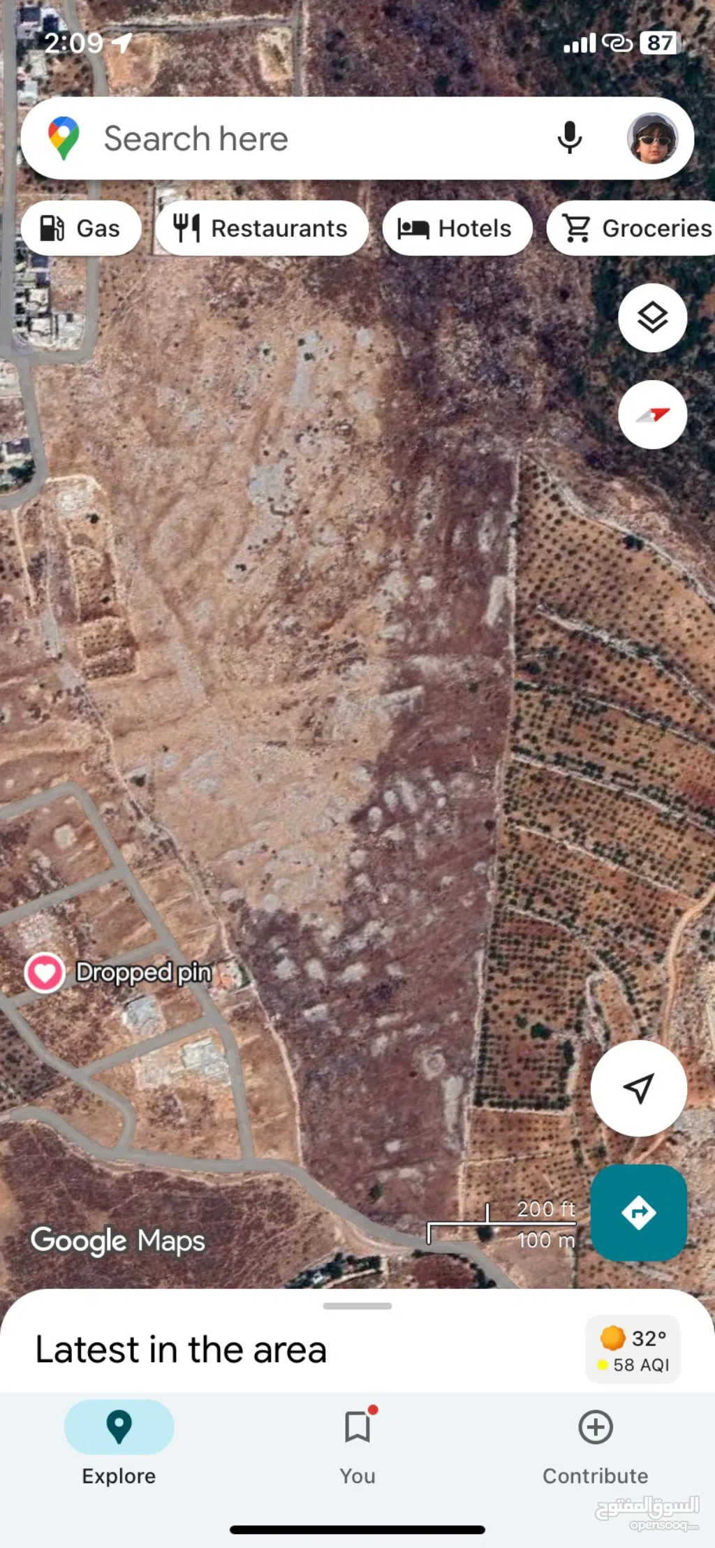 أرض للبيع في نابلس / عصيرة الشمالية حوض واد الصياد مزروعة زيتون متوفر كافة الخدمات اطلالة رائعة