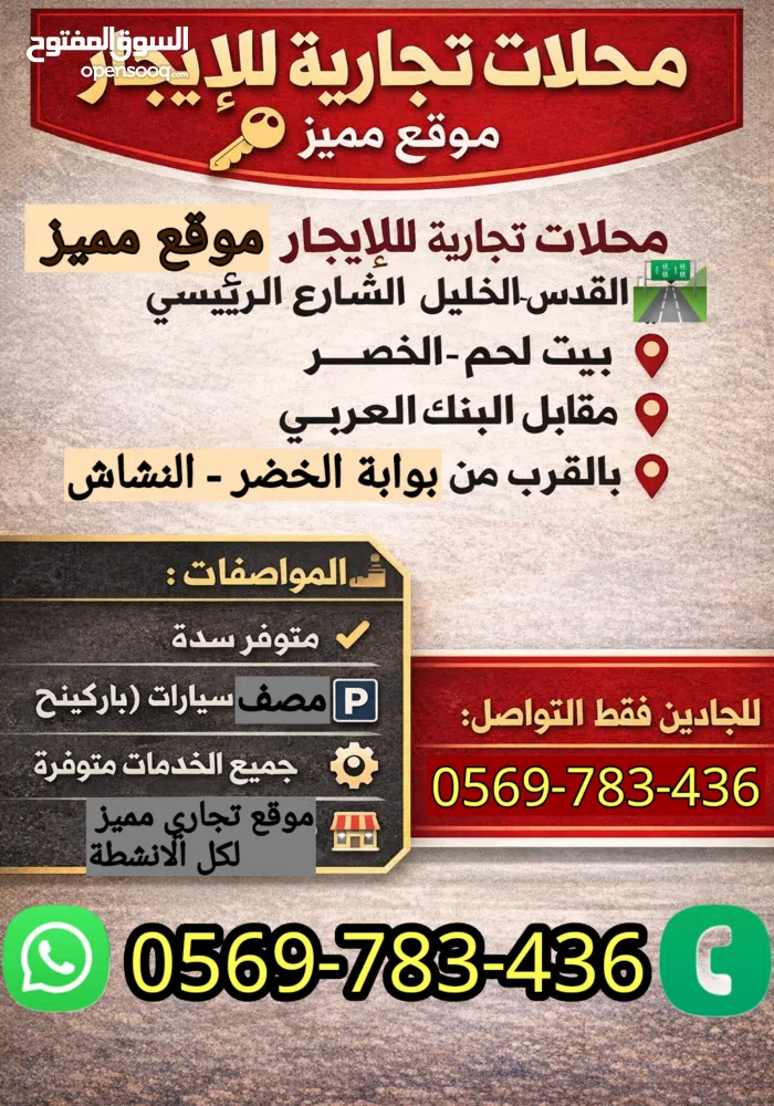 الشارع الرئيسي بيت لحم مقابل البنك العربي الخضر بالقرب من مستشفى اليمامة .. بالقرب من النشاش شارع القدس الخليل