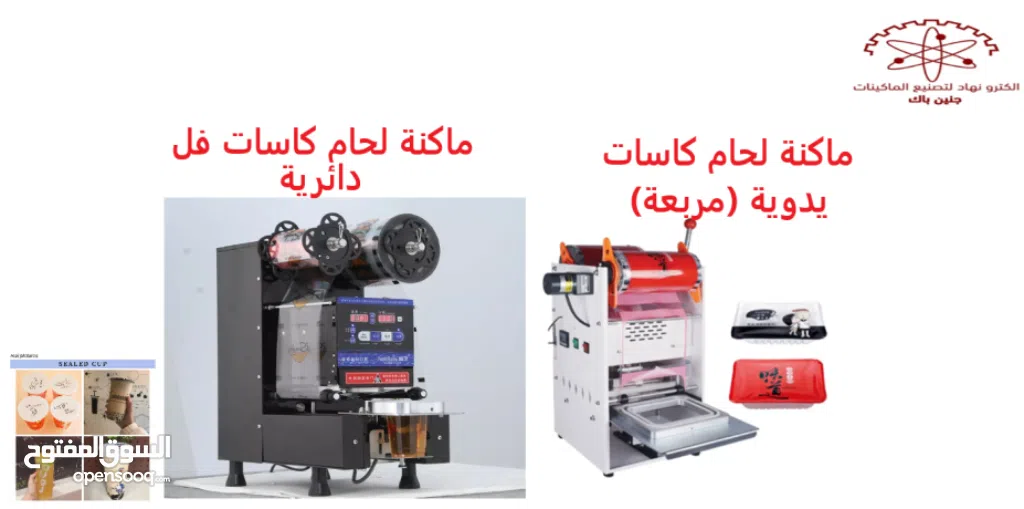 ماكنة لحام كاسات (فل لوتوماتيك ونصف اوتوماتيك) لوضع غطاء على الكاسة (مثل الكوكتيل والجلي والعصير..ال