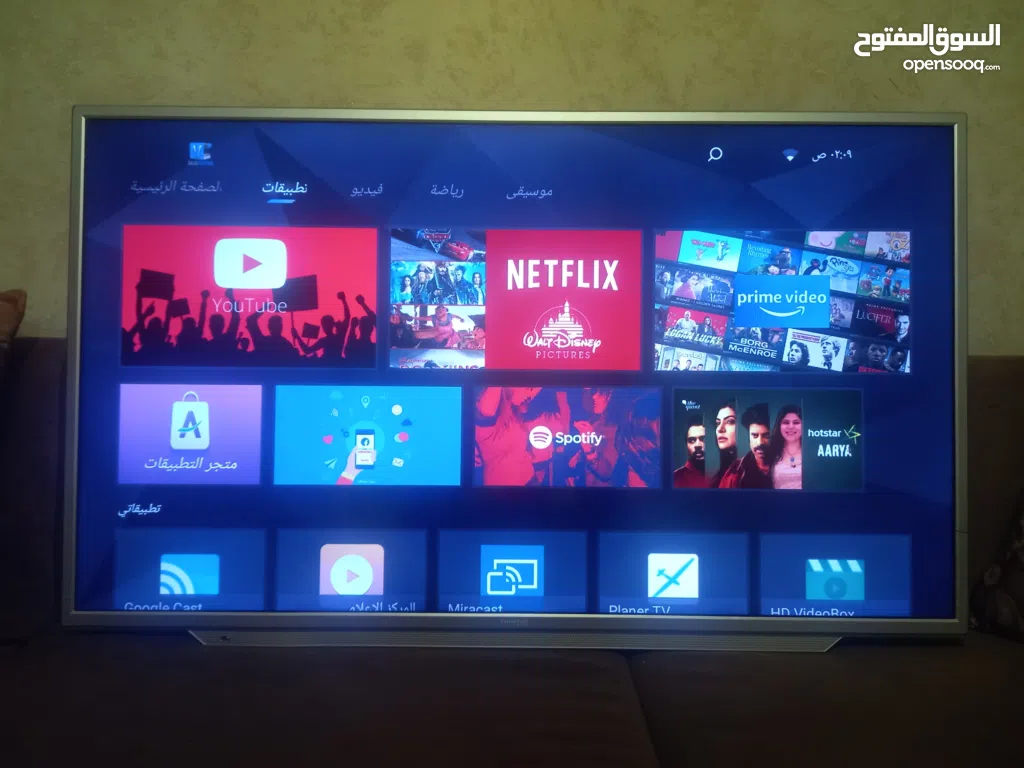 ألوان واضحة ونقية، لا توجد أي خدوش أو عيوب تشغيلية.تلفزيون ذكي (Smart TV) بنظام [أندرويد]، يدعم تطبيقات: Netflix, YouTube, Shahid, وغيرها...