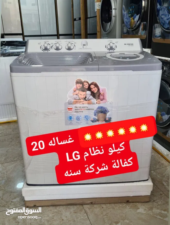 غسالة Fresh حوضين 20 كيلو بنظام LG كفالة 3 سنوات على المتور كفالة سنة على العصارة