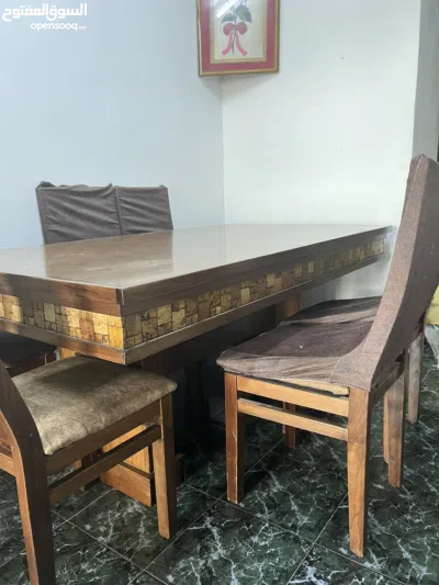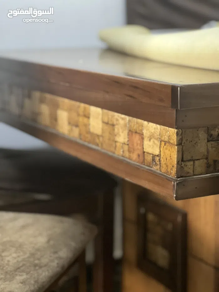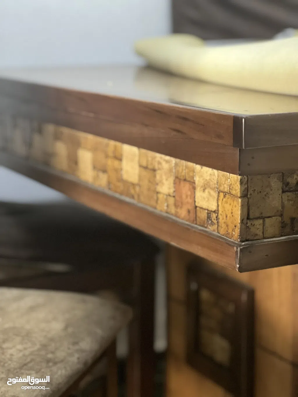 طاولة سفرة بحدث موديل "خشب زان" مطرزة بالحجر الصخري بمظهره الجميل والذي معطي الرقي والفخامة في المنزل الطاولة مستعملة استعمال خفيف وكلن هي جديدة ومكفولة لايوجد بها اي خدش ولا اي اثر جديدة مستعملة استعمال اقل من سنة