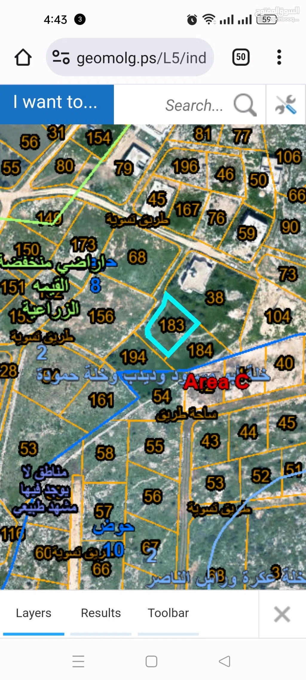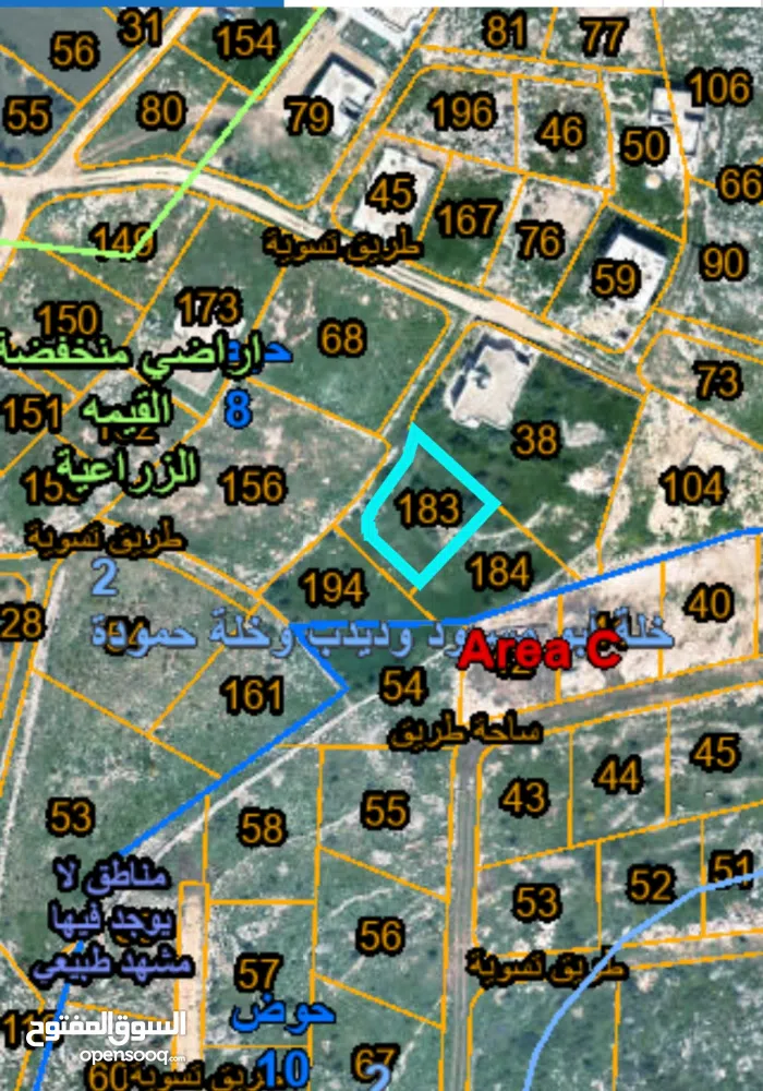 ارض مساحتها 1500 متر تقع شرقي ذنابة حي الرشيد واصلها ماء وكهرباء صالحة للسكن والقطع المعروضة 183 و184 و194