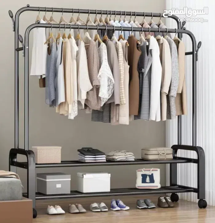 علاقة الملابس المعدنية العصرية مع ستاند أحذية لو بدك حل مثالي لتنظيم ملابسك وأغراضك