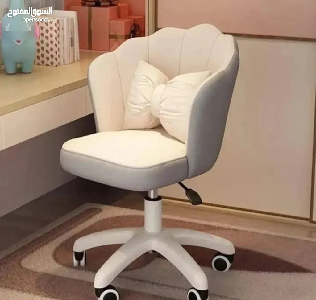 كرسي شِل (Shell Chair)مع بيونة أنيقة مناسب للمكتب، طاولة المكياج أو غرفة النوم قابل لتعديل الارتفاع