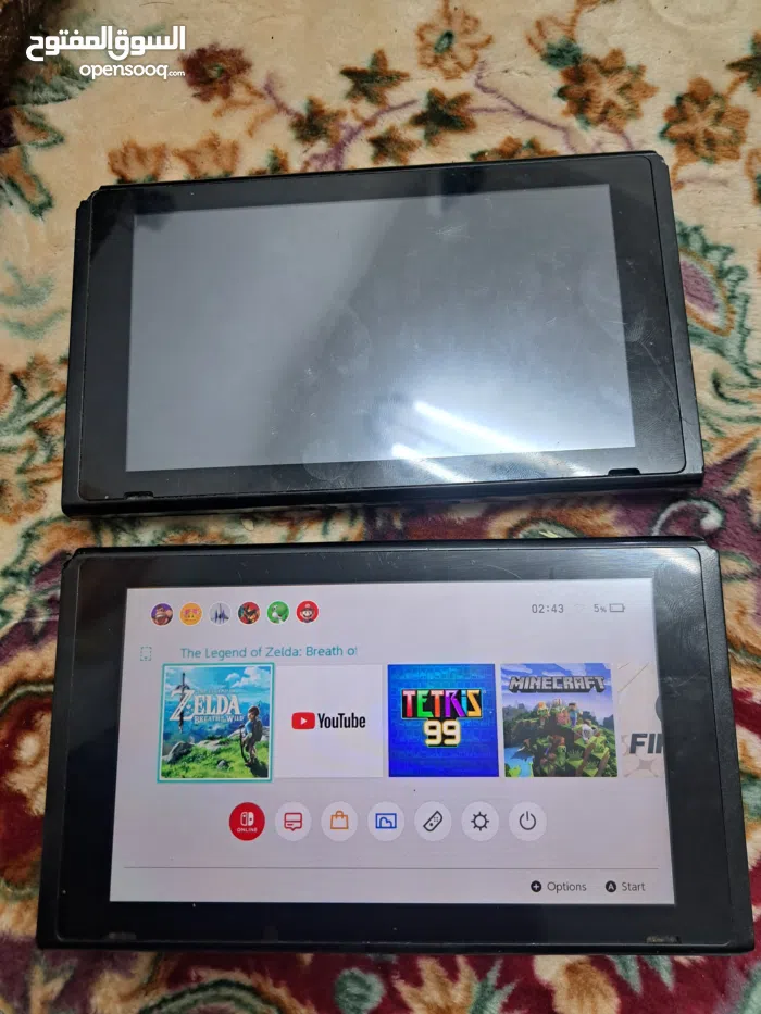 جهازين ننتندو سويتش v1 واحد شغال بس ما بشبك نت وما بشبك ع الدوك مشكلة بقاعدة الشحن والثاني مش شغال بدو تصليح وبطارية مثل ما بالصورة الاجهزة ما معهن اشي