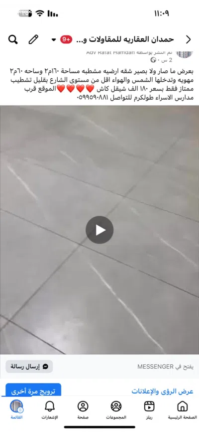 يتوفر لدينا عرض حرق اما ان تدفع ثمن الشقه 200 الف شيقل كاش وتستلمها مشطبه وجاهزه من جميعو واما ان تدفع ثمنها 250 وقسط 1500 شيقل مش 2000 ودفعه 70 الف شيقل والشقه 120م2 عليها ساحه هديه مسقوفه 70م2 وعليها ساحه سماويه 40م2 طابق شبه ارضي قرب مدارس الاسراء للتواصل اضغط لإظهار رقم الهاتف 9705995908XXوالشقه لسا مش جاهزه 100٪شوفو الفيديو وان شا الله الكم تكونو مبسوطين كما يسرنا ان تقومو بمتابعة صفحتنا وعمل متابعه لها على الفيس بوك (حمدان العقاريه للمقاولات والشقق السكنيه)