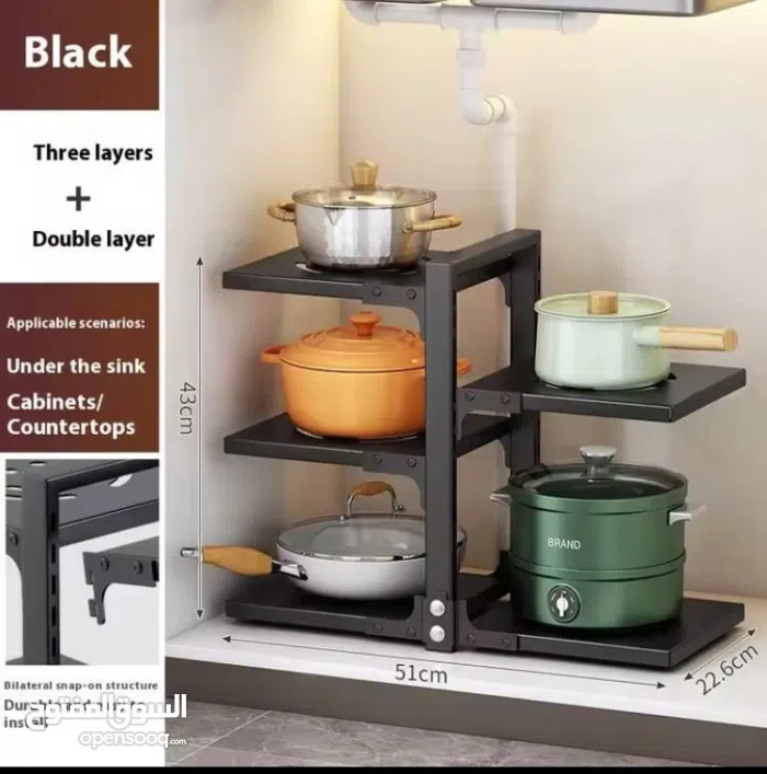 منظّم متحرّك بثلاث طبقات، بتقدري تغيّري المسافة بين كل طبقة حسب حجم الطناجر.