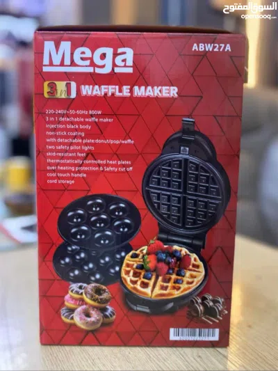 جهاز صانع الحلويات 3 في 1 من Mega – طراز ABW27A تسخين سريع يوفر عليك الوقت مقبض بارد الملمس
