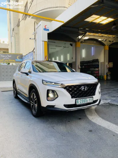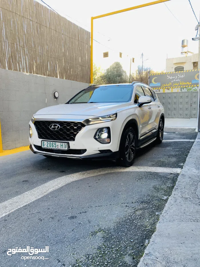 سانتافيه 2019 ابيض فل سبع ركاب ماشي 120 الف فتحة بانوراما كميرات امامي خلفي شاشة ومدافئ
