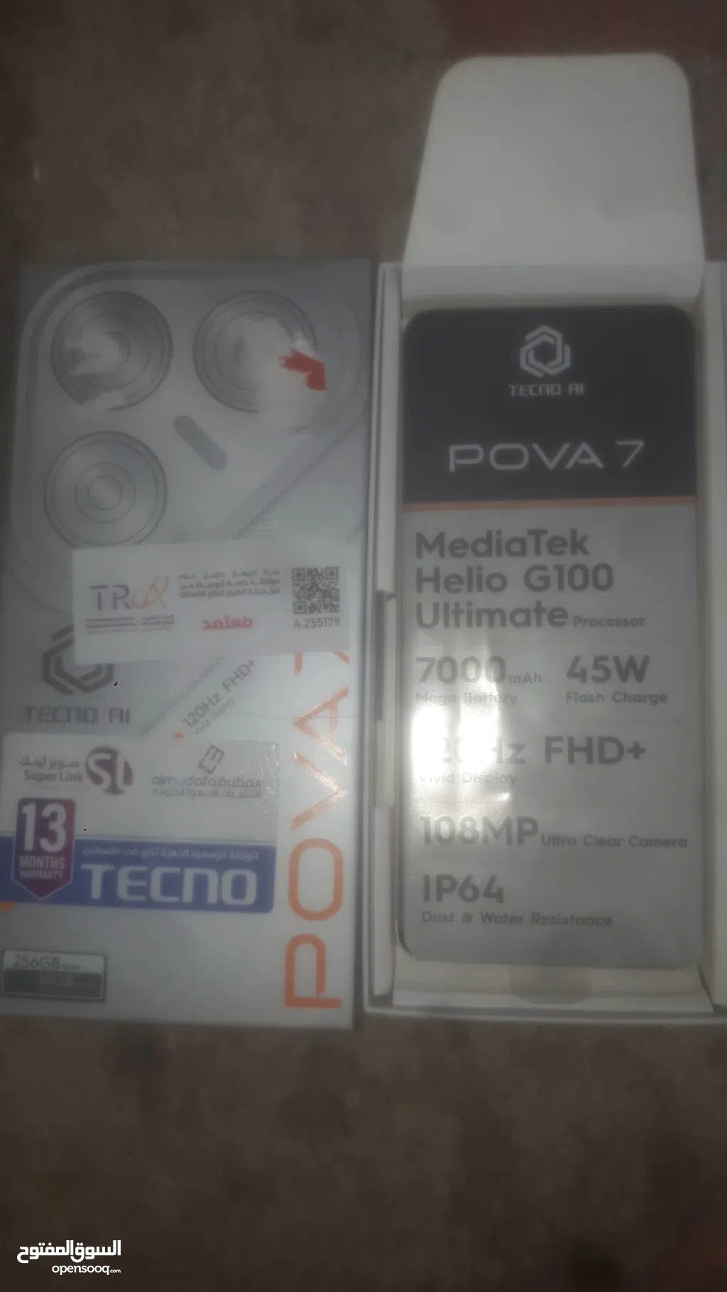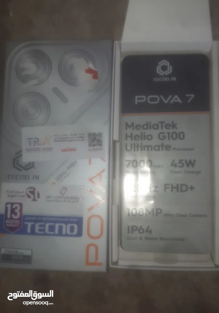 جهاز تكنو بوفا 7 جديد استخدام ايام مساحة 256 جيجا ورام 8+8 جيجا بكفالتو بكرتونتو بكل اغراضو