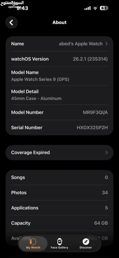 معها حزام اصلي وكابل شحن اصلي