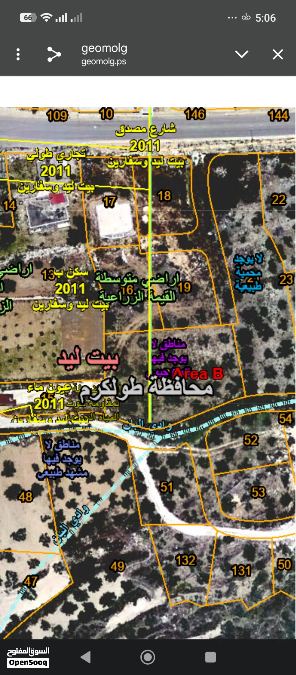 ارض مساحه 555متر مربعه على شارع بيت ليد الرئيسي ارض مربعه