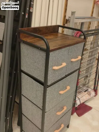 خزانة أدراج عصرية بتصميم صناعي أنيق قماش متين بلون رمادي أنيق هيكل حديد قوي وثابت